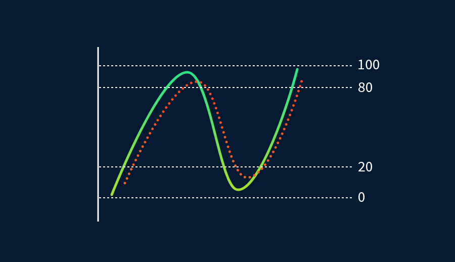 A reading above 80 is considered to be an indication that the market has reached extreme overbought levels, whereas a reading below 20 indicates that the market has declined to extreme oversold levels.