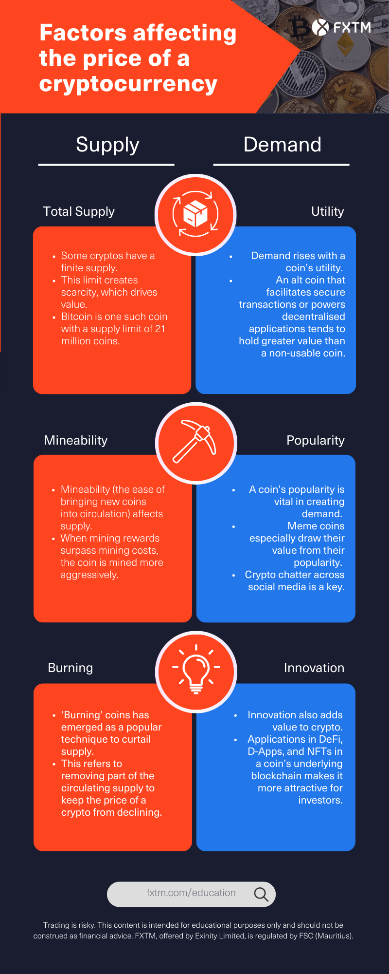 Much like any other asset class, the supply and demand dynamics of a new cryptocurrency determine its value. However, the price is also influenced by several other factors.