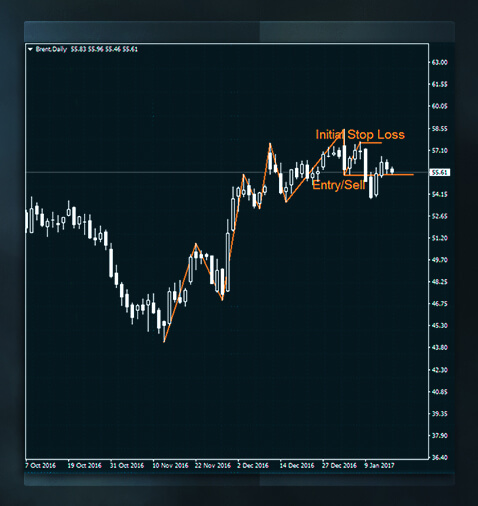 More specifically, an initial stop-loss placed at the top of a reversal pattern would be required for a short entry into the market.