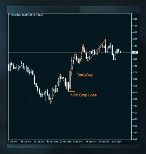 On the other hand, an initial stop-loss would need to be placed at the bottom of the reversal formation for a long entry.