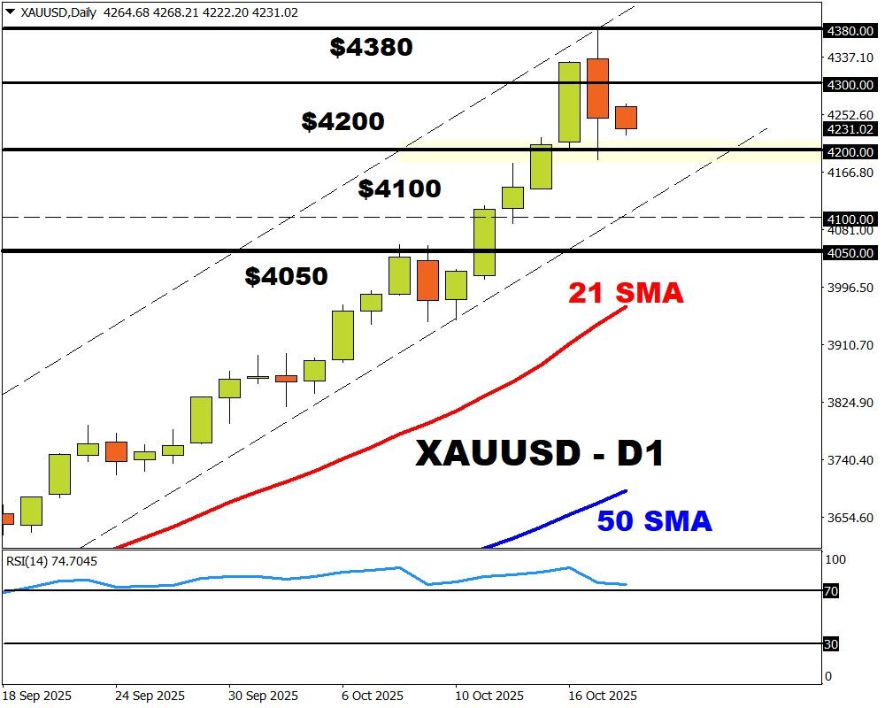 BEARISH – Weakness below $4200 could see prices decline toward $4100 and $4067.27 the lower limit of Bloomberg’s FX model.