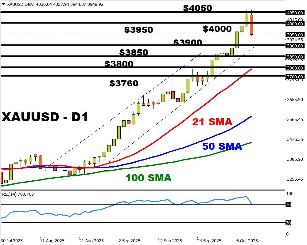 Although the fundamental forces favour bulls, the technicals are starting to veer in favour of bears. Weakness below $3950 may open a path toward $3900 and lower.