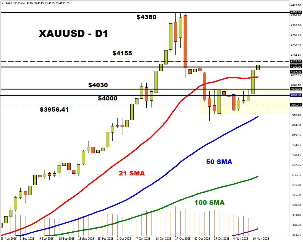 In the commodity space, gold extended gains on Tuesday after recording its biggest daily jump since May. The precious metal remains supported by Fed cut bets and economic risks in the US amid plans to pay a so-called tariff dividend which may lead to higher inflation. Prices remain firmly bullish on the daily charts with a breakout above $4150 opening a path toward $4200.