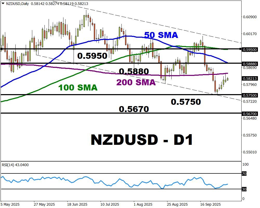 - Should the RBNZ move ahead with a hawkish rate cut, the NZDUSD may rebound toward 0.5888 and 0.5950.