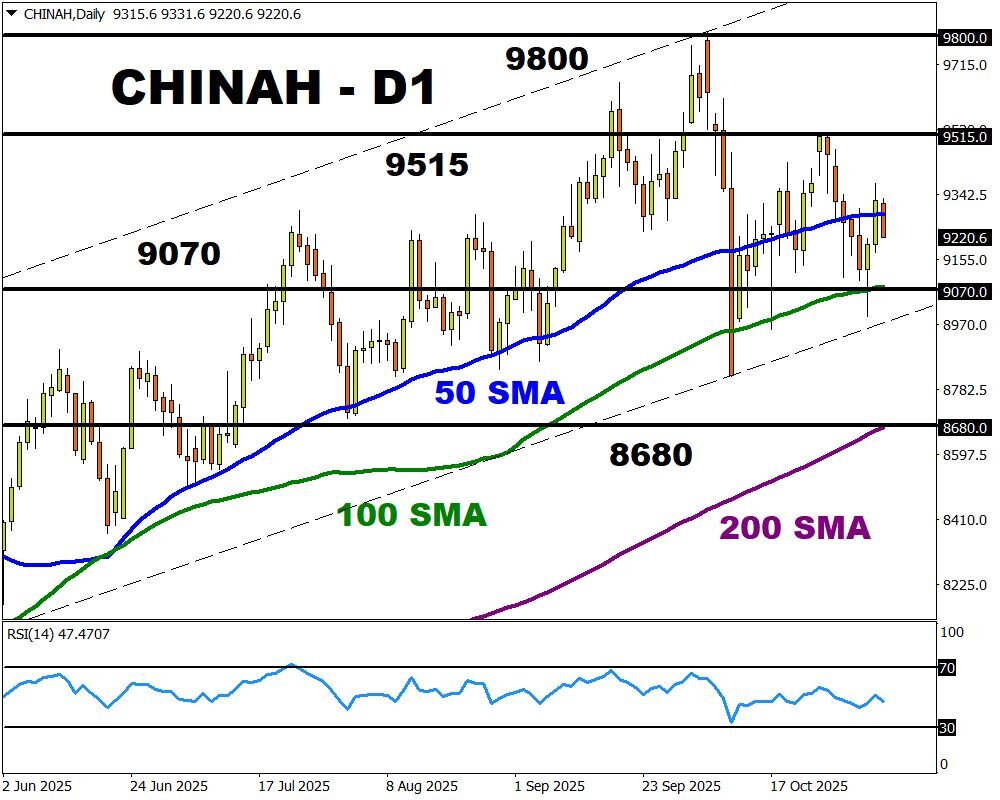- A positive surprise may spark a wave of buying across Chinese equities, supporting the CHINAH index.