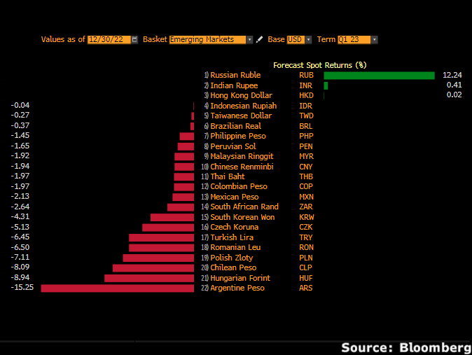 King dollar could be in store for further pain in the New Year as fundamental forces work against the world's reserve currency. During the final quarter of 2022, the dollar weakened against every single G10 currency as cooling inflation reduced the pressure for the Fed to remain aggressive on rates. Concerns over the US economy along with falling Treasury yields left the currency unloved and depressed. Dollar weakness has the potential to become a key theme in 2023 as rate hikes slow and eventually become rate cuts in the face of cooling inflation.