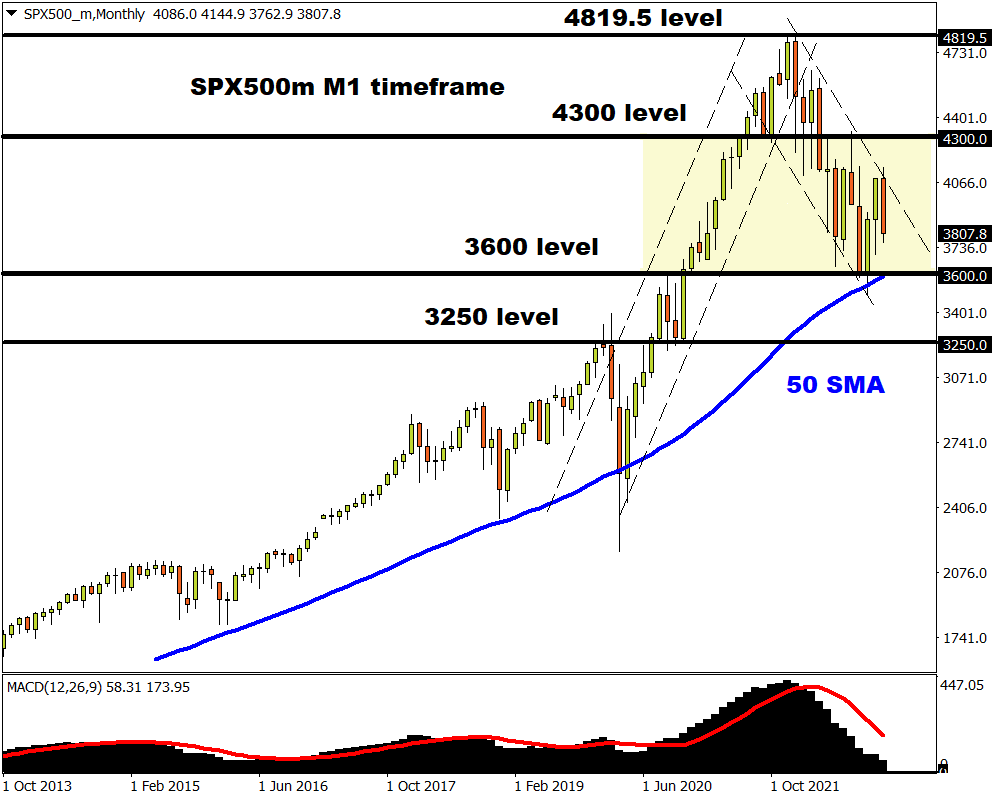 Things could become even more interesting for global equity markets as shifting fundamental themes influence sentiment. In 2022, stock markets were a battleground with the S&P 500 concluding almost 20% lower thanks to rising interest rates and growth concerns. Equity bulls could fight back with a vengeance in the second half of 2023 as slowing inflation encourages central banks to pivot. Any signs of rates being cut down the road could sweeten appetite for stocks, with the S&P500 and Nasdaq among others experiencing bullish reversals. Falling interest rates would offer consumers some relief, by encouraging spending and investment, and ultimately stimulating economic activity. Looking at the technicals, the S&P 500 remains in a bearish channel on the monthly charts. A solid breakout above 4,300 could open a path back to towards the all-time high at 4,819.5.
