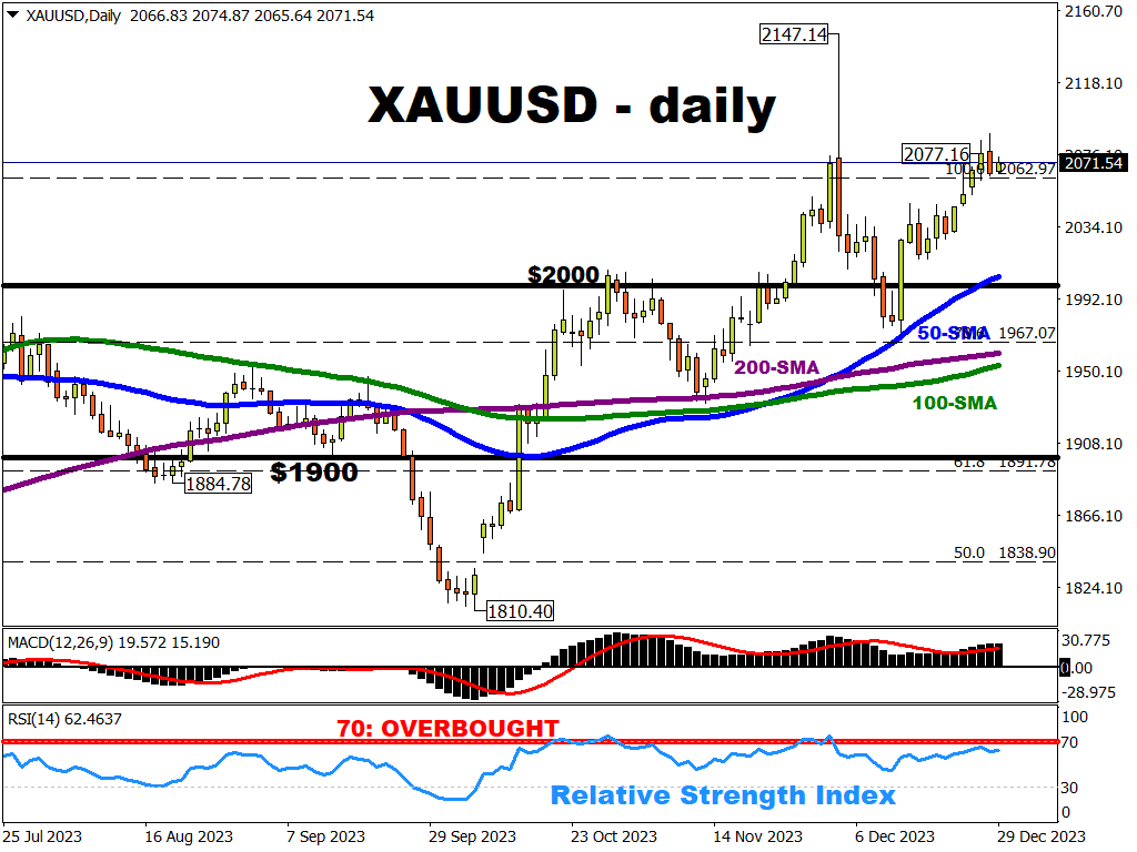 Also, on December 27th, the precious metal secured its highest-ever daily closing price of $2077.16.