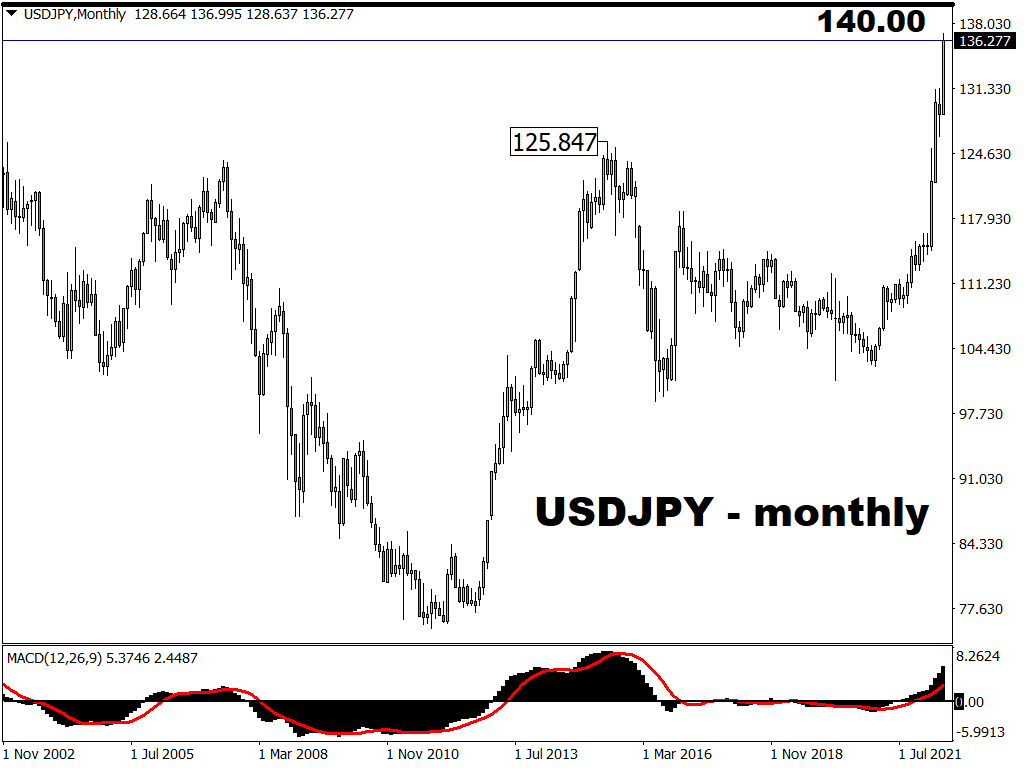 USDJPY has reached its highest levels since 1998, skyrocketing past previous peaks set in 2015 and also in 2002 with such ease.