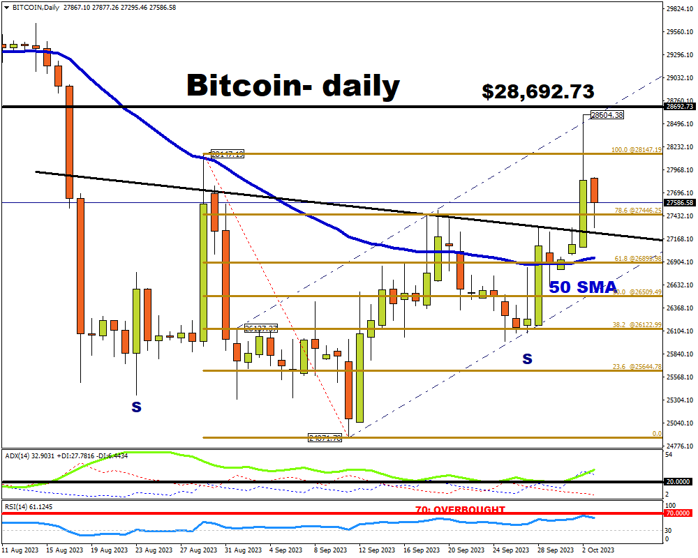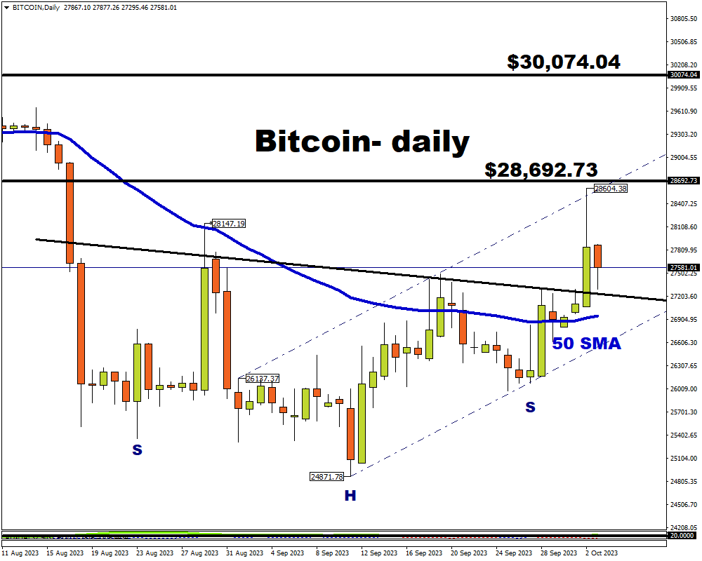 Along the way, Bitcoin broke through the neckline of an inverse head-and-shoulder pattern, to a high of $28604.38.