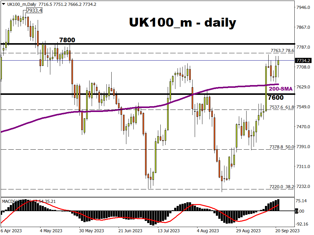 - UK100_m upside may be capped by near-80% chance for one final BOE hike by March 2024