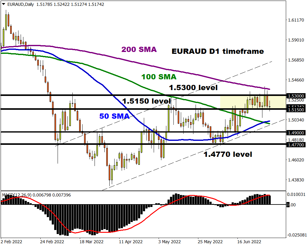 The EURAUD could be gearing up for a breakdown below the 1.5150 support.
