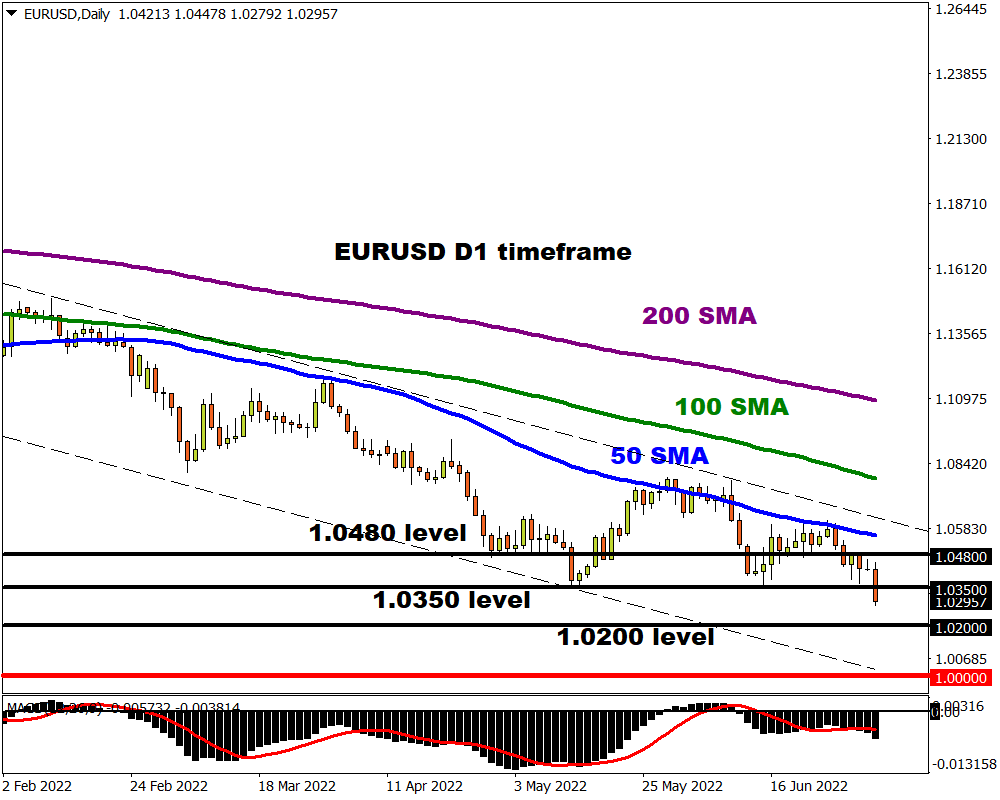 The EURUSD has cut through the 1.0350 support like a hot knife through butter.
