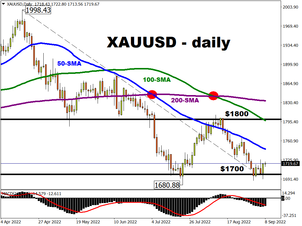 Gold has been testing the psychologically-important $1700 support level over the past week, as suggested in the title of our August 29th Trade of the Week article.