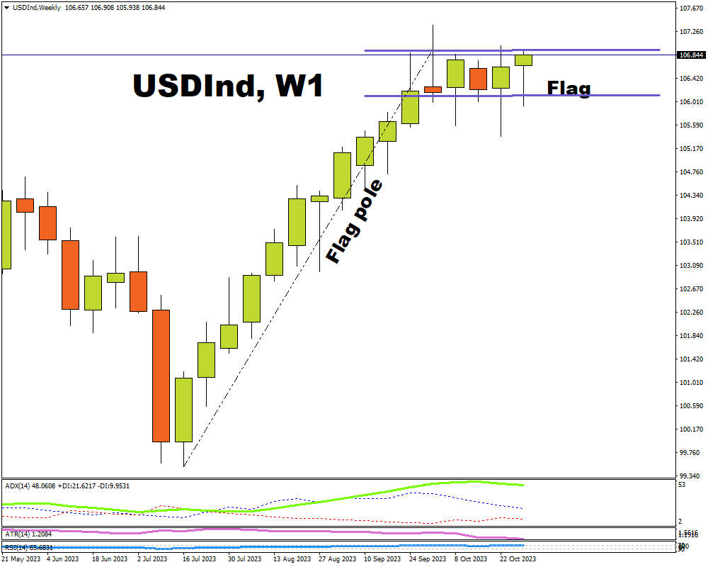 So, we look to the USDInd, which tracks how the US dollar performs against a basket of its G10 peers including EUR, GBP, JPY and others.