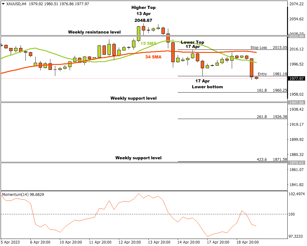 A possible critical support level formed when a lower bottom was recorded on 17 April at 1981.18. The bulls pushed the price higher in a bid to gain supremacy again but encountered a resistance level that formed earlier in the same session at 2015.05.