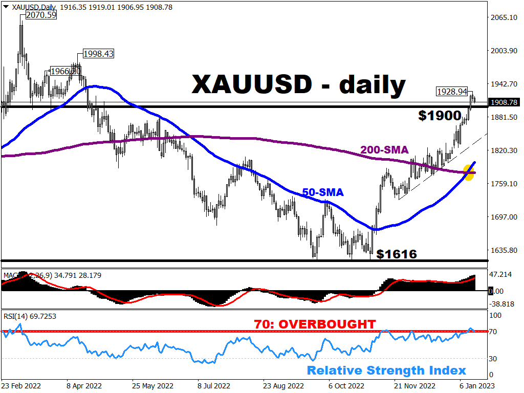 Such price action in the US dollar/yields have left gold exposed to some profit taking after posting fresh cycle highs just shy of $1929.