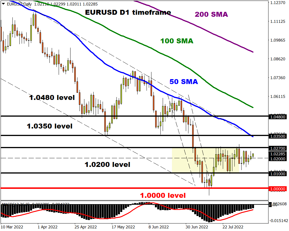 Since punching back above 0.6850 back in mid-July, the AUDUSD has been trapped within a range. Support can be found at 0.6850 and resistance at 0.7050. Given how prices are trading above the 50-day SMA and the MACD is above zero, bulls have a platform to push prices higher. However, the currency pair could be waiting for a fundamental catalyst to experience a breakout/down.
