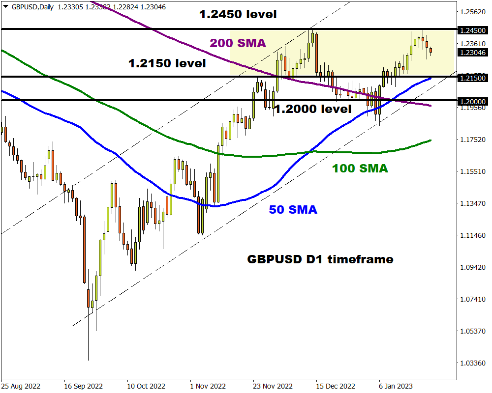 It has been a choppy affair for the GBPUSD over the past few days. Prices remain trapped within a range with support at 1.2150 and resistance at 1.2450. A breakout could be on the horizon but this may need the assistance of a fresh directional catalyst. Although prices are trading above the 50, 100, and 200-day SMA, bears seem to be back in the vicinity. Prices may test the 1.2150 level in the short to medium term. A breakdown below this point could open a path back toward 1.2000.