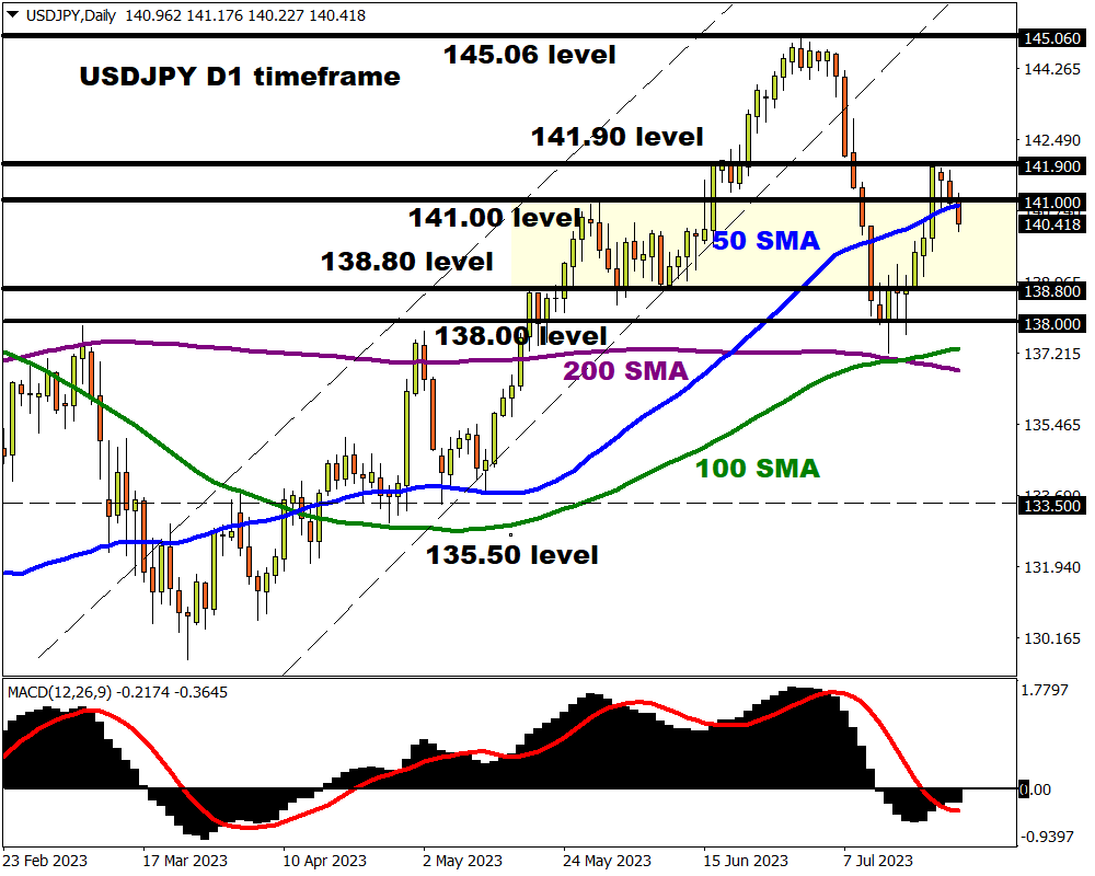 USDJPY bears seem to be slowly creeping back into the scene, especially after prices broke through the 141.00 level. Dollar weakness could drag the currency pair towards 138.80 and 138.00, respectively. If prices can push back above 141.00, bulls could challenge 141.90 once again.