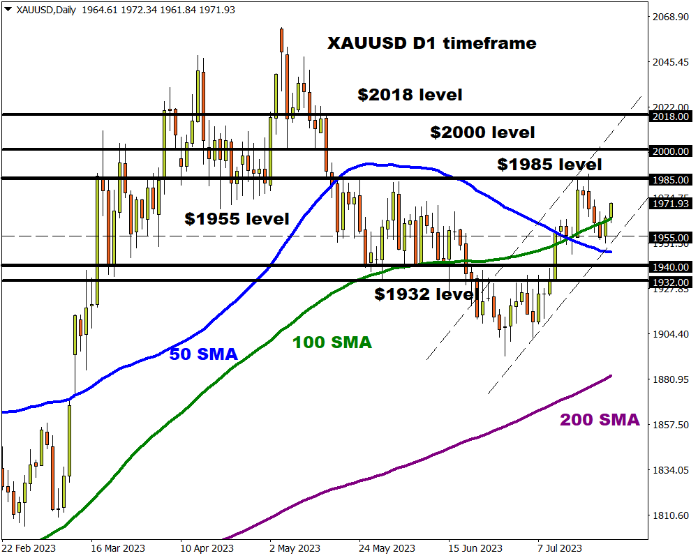 After kicking off the week on a rocky note, gold bulls seem to have their footing with prices trading above the sticky $1960 level. Should this rebound build momentum, this could take the precious metal towards $1985 and $2000. On the other hand, a decline back below $1955 may see prices test $1940 and $1932.