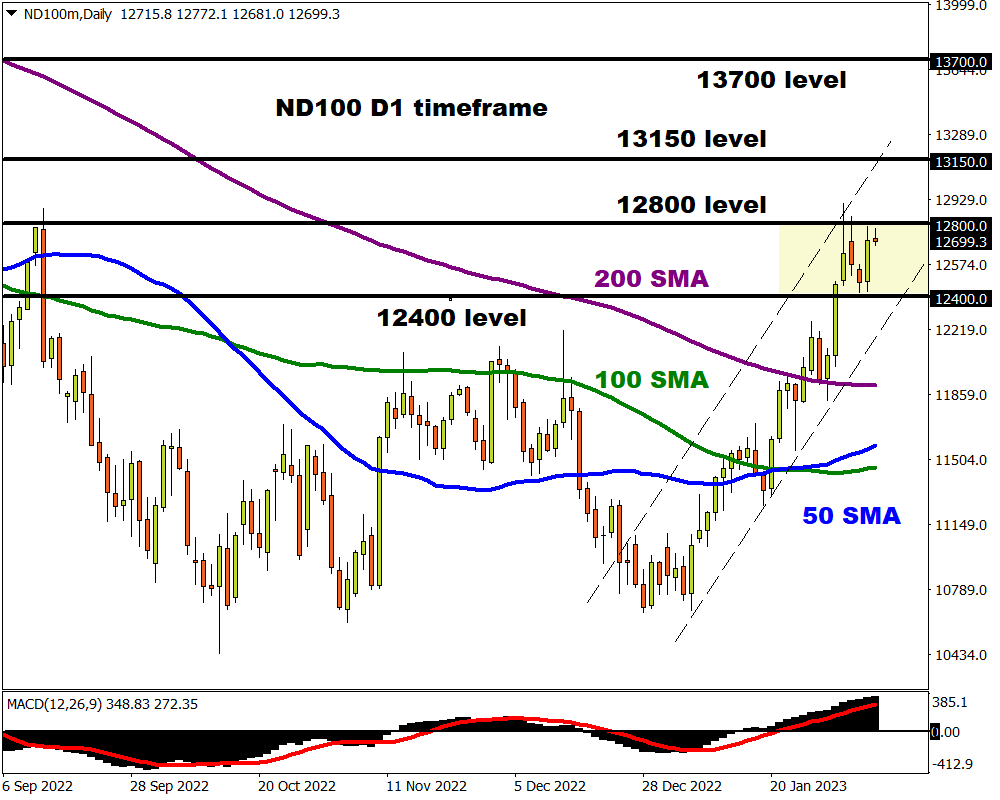 Just like the S&P 500, the Nasdaq 100 jumped overnight with bulls eying 12800. Overall, the Index remains firmly bullish on the daily charts as there have been consistently higher highs and higher lows while the MACD trades above zero. A solid breakout and daily close above 12800 could inspire and incline towards 13150. Should prices slip back below 12400, the Nasdaq could sink back to the 200-day SMA around 11900.