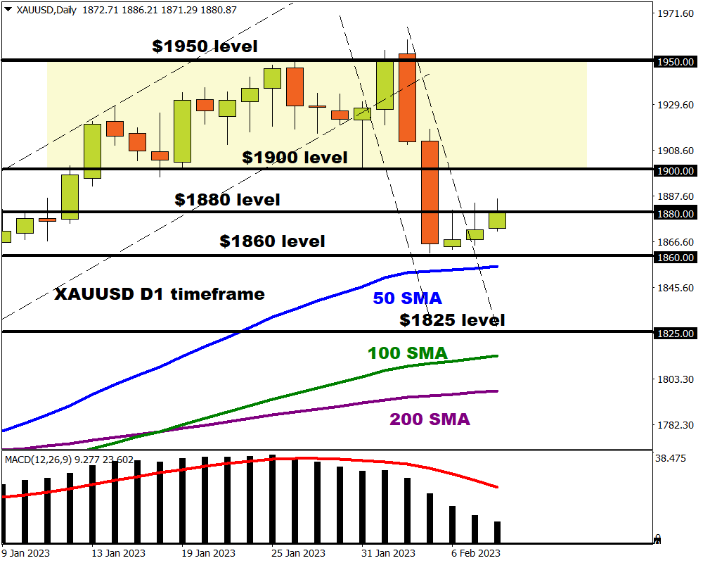 It's been a shaky week for the precious metal with prices struggling to push back above $1880. Sustained weakness below this level may trigger a selloff towards the 50-day SMA and the next key level at $1825. A solid breakout above $1880 could see gold test $1900.