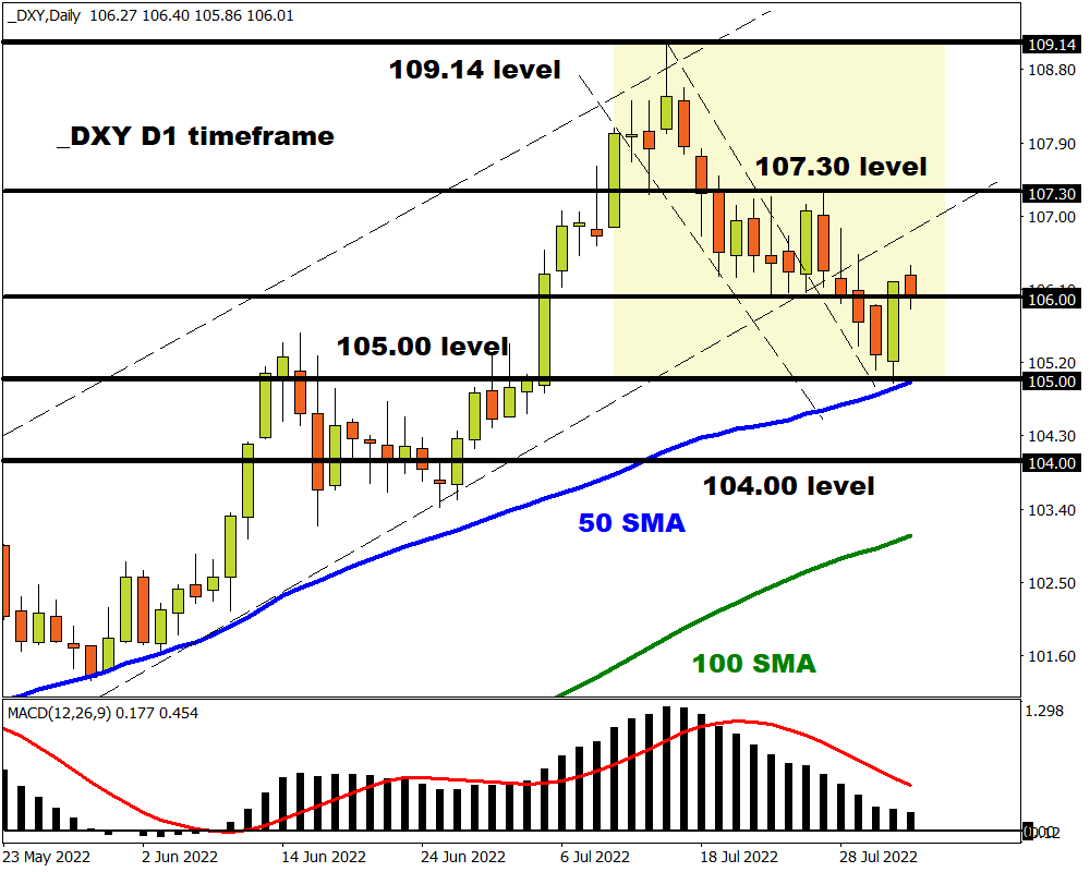 Dollar bulls drew support from the risk-off mood and hawkish comments from Fed officials on Tuesday. After staging a rebound from the 105.00 support level, prices are trading marginally above 106.00 as of writing. Should this level prove to be reliable support, a move back towards 107.30 and 109.14 could be on the cards.