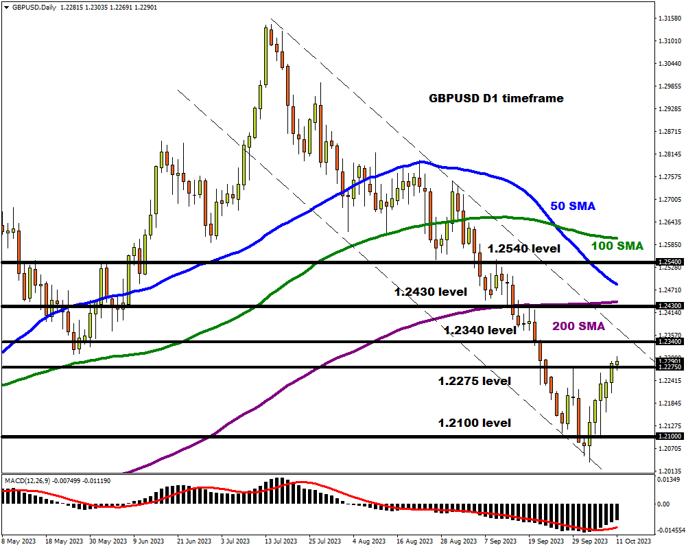Euro bulls could make a comeback after prices secured a daily close above the 1.0600 level. Although prices are trading below the 50, 100, and 200-day SMA, the bearish trend may be threatened if a solid breakout above 1.0650 is achieved. This may open a path higher toward the 50-day SMA at 1.0750 and 1.0820 – where the 200-day SMA resides. Should prices keep below 1.0600, this could trigger a decline back towards 1.0500.