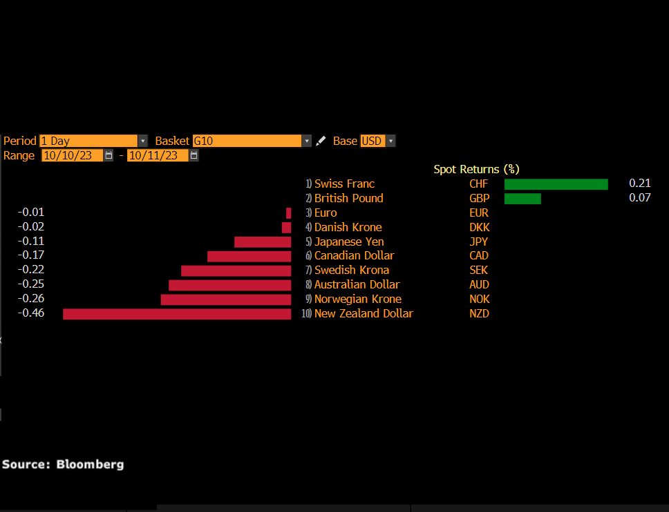 Looking at currencies, the dollar remains relatively stable despite dovish Fed remarks – gaining against most G10 currencies ahead of the FOMC meeting minutes this evening.