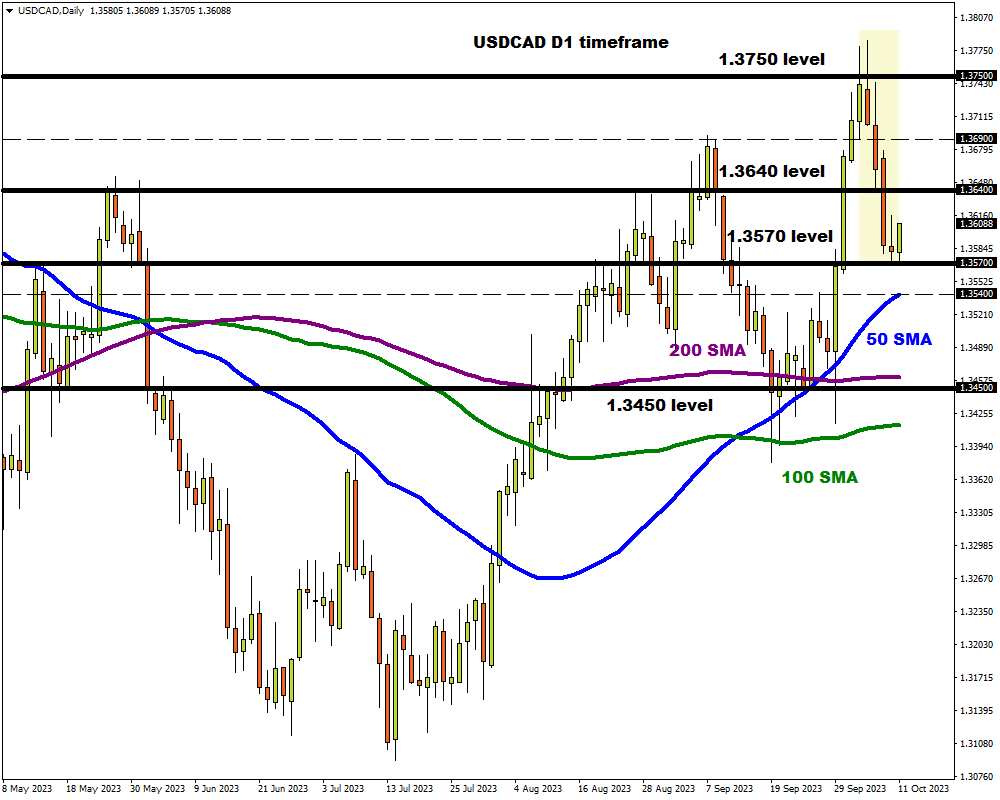 The USDCAD has found some support at 1.3570 after falling for four consecutive days. Bears seem to be back in the picture and could switch into a higher gear if a solid breakdown below 1.3570 is achieved. This could result in a decline towards the 50-day SMA at 1.3540 and 1.3450 – a level just below the 200-day SMA can be found. If bulls can push prices back above 1.3640, the first checkpoint can be found at 1.3690 before a possible move back towards 1.3750.
