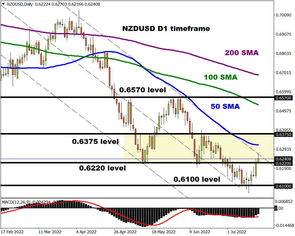 Things are looking interesting for the NZDUSD. After punching above 0.6220 this morning, the next key level of interest can be found at the 50-day Simple Moving Average. Beyond this level will be key resistance at 0.6375. Should 0.6220 prove to be reliable resistance, a decline back towards 0.6100 could be on the cards.