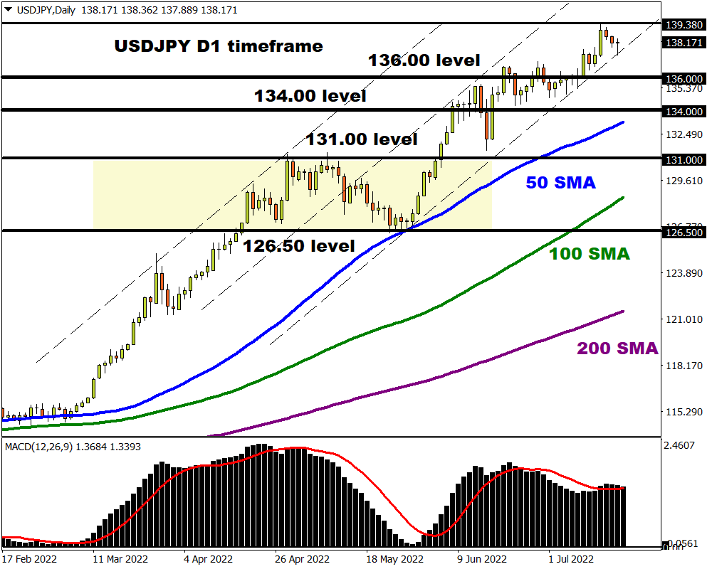 Prices remain firmly bullish on the daily charts. A technical throwback towards 136.000 could trigger an incline back towards 139.380. Alternatively, a strong daily close above 139.380 may open the doors towards 140.00 and higher. Should the 136.000 give way, the USDJPY could test 134.00.