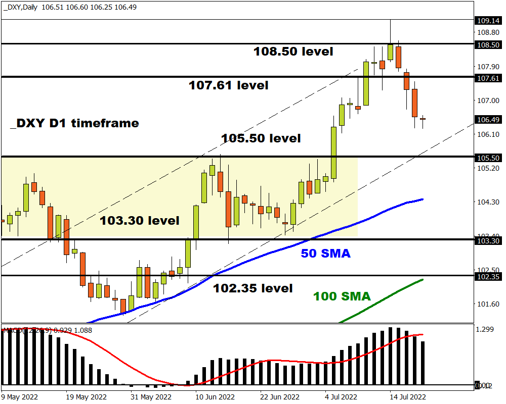We have seen the Dollar Index (DXY) dip below the 106.50 level, essentially signalling the end of the bullish trend on the daily charts. If the downside momentum holds, prices could test 105.50 and lower which drags the dollar back into a range with the next key support at 103.30.
