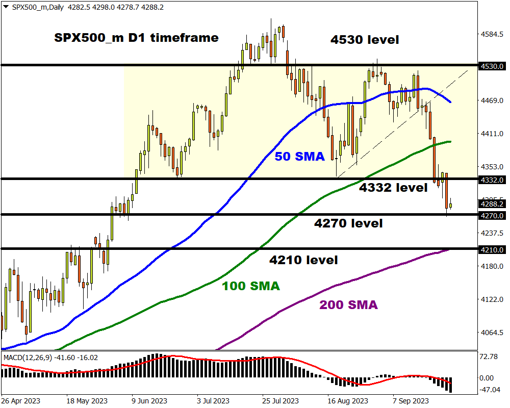 The bearish case for the SPX500_m was reinforced after prices secured a solid daily close below the 4332 levels.