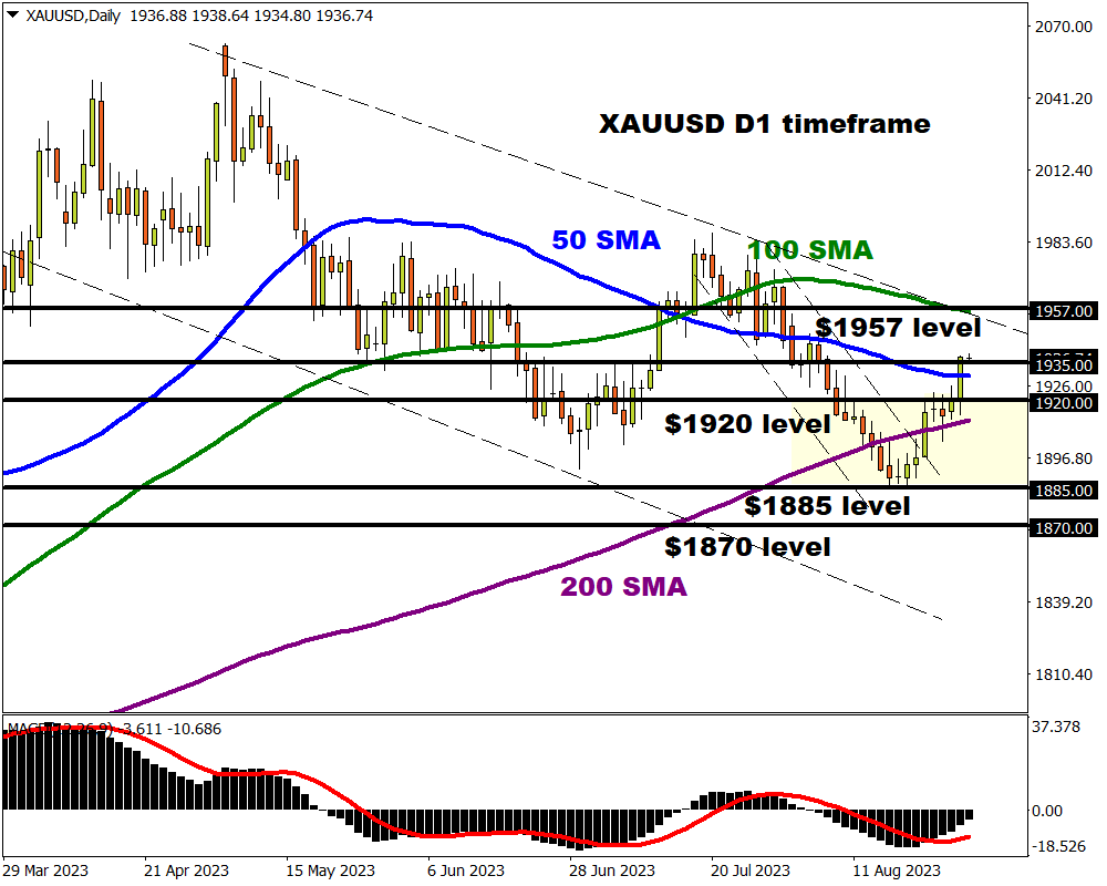 In our trade of the week, we discussed whether gold was primed for another breakout. We received our answer yesterday after the precious metal blasted through the $1920 resistance level following soft US economic data. Gold bulls are back in the building and could send prices higher amid a weaker dollar and growing hopes for a less hawkish Fed. The recent breakout above $1935 may inspire a move higher towards $1957 – where the 100-day SMA can be found. Although bulls are currently in power, this can be easily flipped by key US economic data – including Friday’s highly anticipated NFP report.