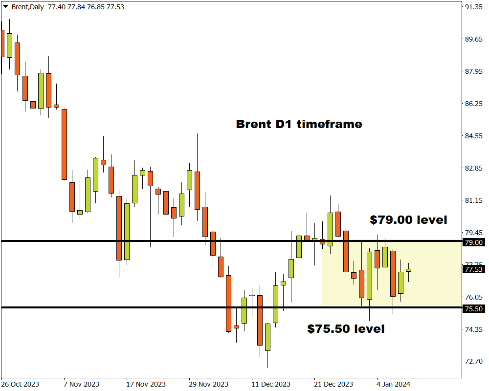 - Key levels of interest at $79 and $75.50