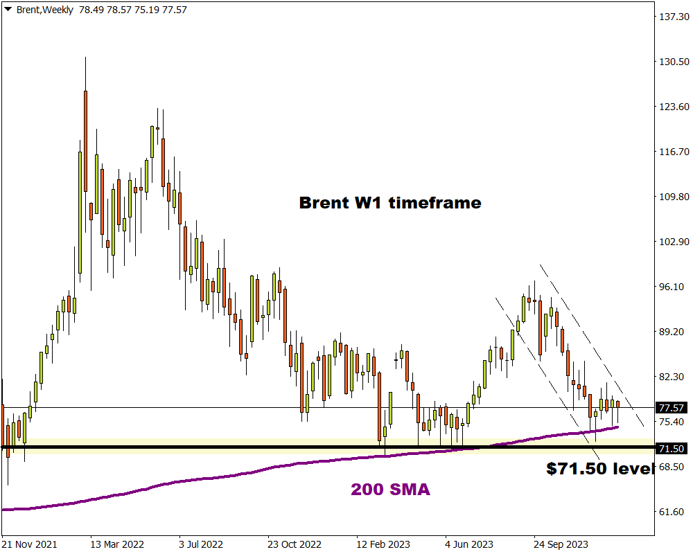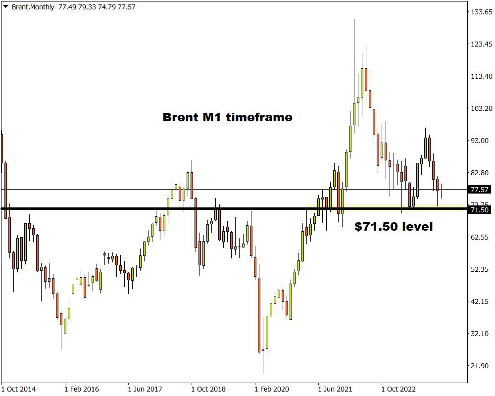Taking a quick look at the monthly charts, prices are approaching a significant support at $71.50. A solid monthly close below this level could signal further downside.