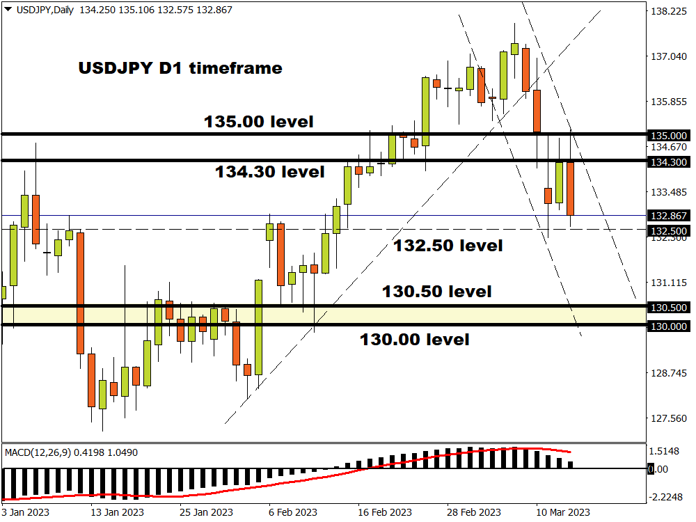 Yen bulls are certainly on a roll today, dragging the USDJPY toward the 132.50 level. This currency pair is bearish on the daily charts and could sink further if 132.50 is breached. A strong breakdown below this point could encourage a selloff towards 130.50 and 130.00, respectively. For bulls to jump back into the game, the 135.00 resistance needs to be taken out.