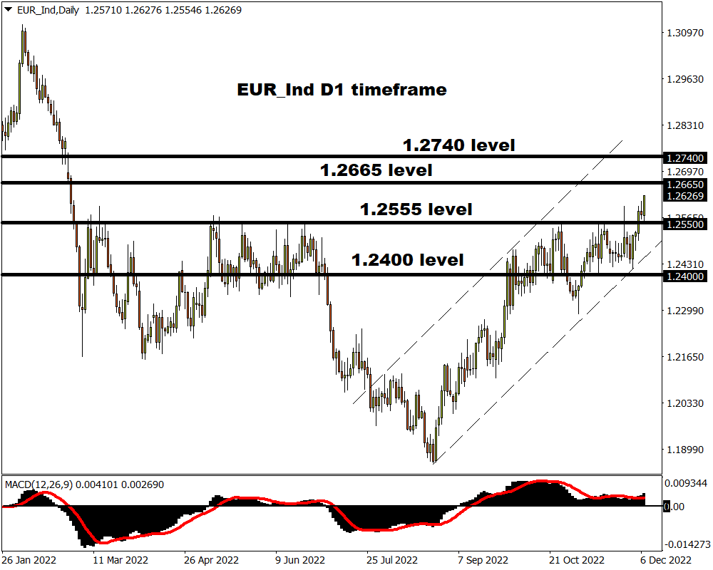 As the subtitle says, FXTM’s equally weighted Euro index remains bullish on the daily charts. There have been consistently higher highs and higher lows while prices are trading above the MACD. A strong breakout and daily close above 1.26650 could open the doors towards 1.2740. If prices dip back below 1.2550, the next level of interest can be found at 1.2400.