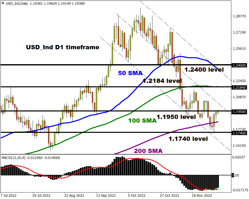 After dipping below the 200-day SMA last week, the equally-weighted USD index has experienced a rebound back toward 1.1950. A strong daily close above this point could threaten the current bearish channel with the next key level found at 1.2184 – a point below the 100-day SMA. Should 1.1950 prove to be reliable resistance, prices may decline back towards 1.1740.