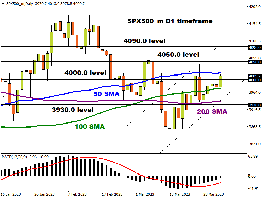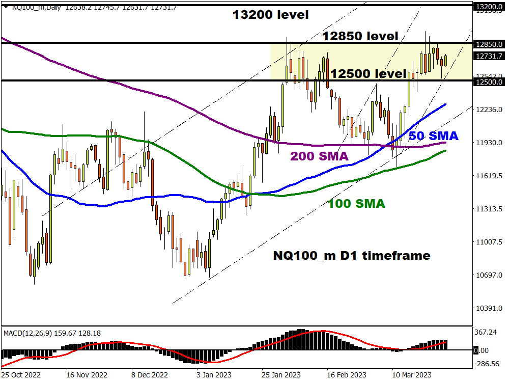 Easing concerns over the banking sector has contributed to the overall risk-on mood with US futures signalling a positive open. After the chaos witness over the past few weeks, it seems like a sense of normality has returned to markets with the attention back on key economic data and risk events. The next few days could be even more eventful, especially for US markets due to Fed speeches, Senate hearings on Silicon Valley Bank, and the Fed’s preferred measure on inflation.