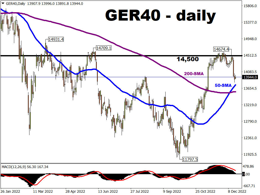 The German Dax tumbled last Thursday out of its recent range, despite forming a 'golden cross' (when 50-day SMA crosses above its 200-day counterpart) earlier this month.
