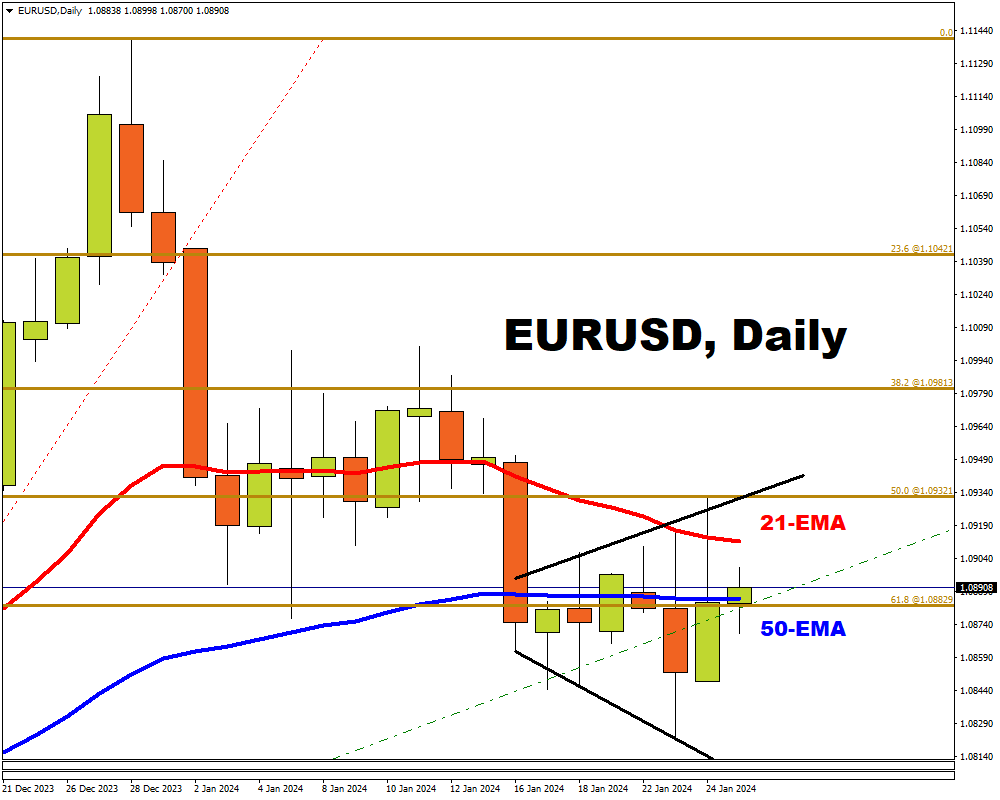 - TP hit: YES, the EURUSD hit 21-Day EMA and 50% Fib level