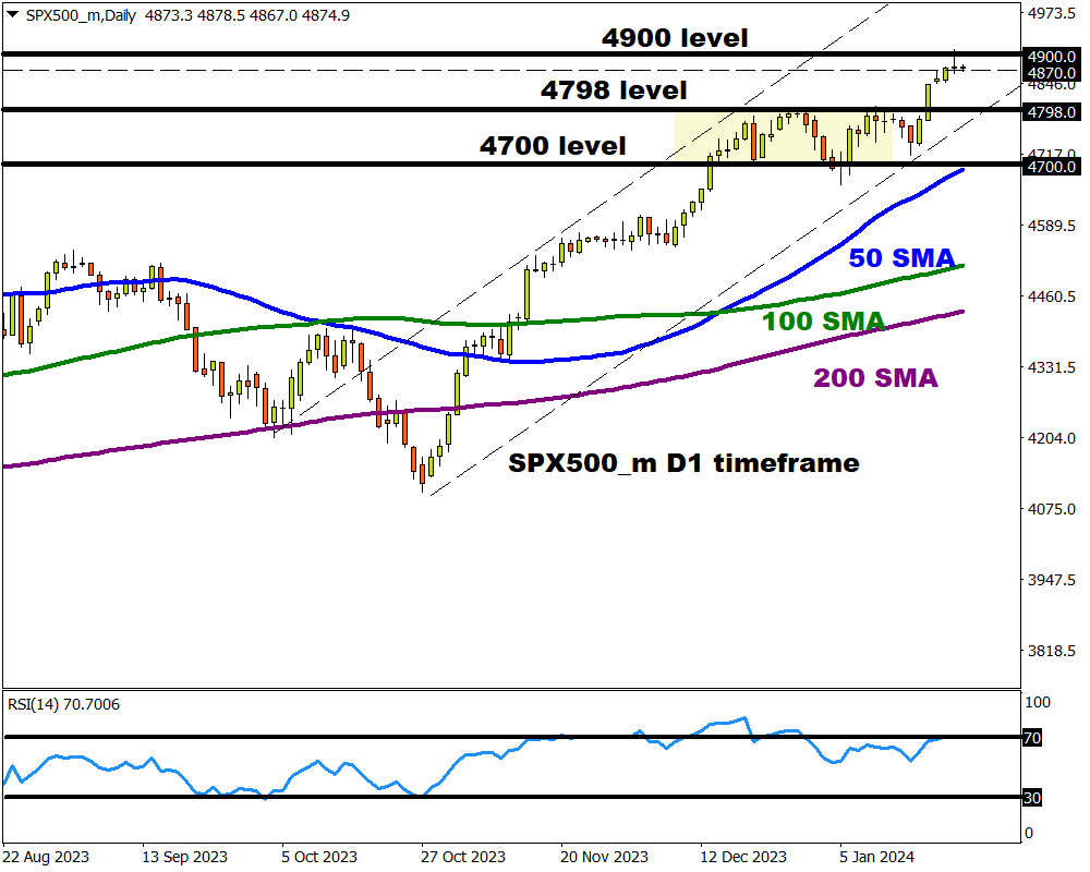 Back on Monday, we covered the SPX500_m in our trade of the week. Prices were firmly bullish, especially after surging to record highs last Friday.