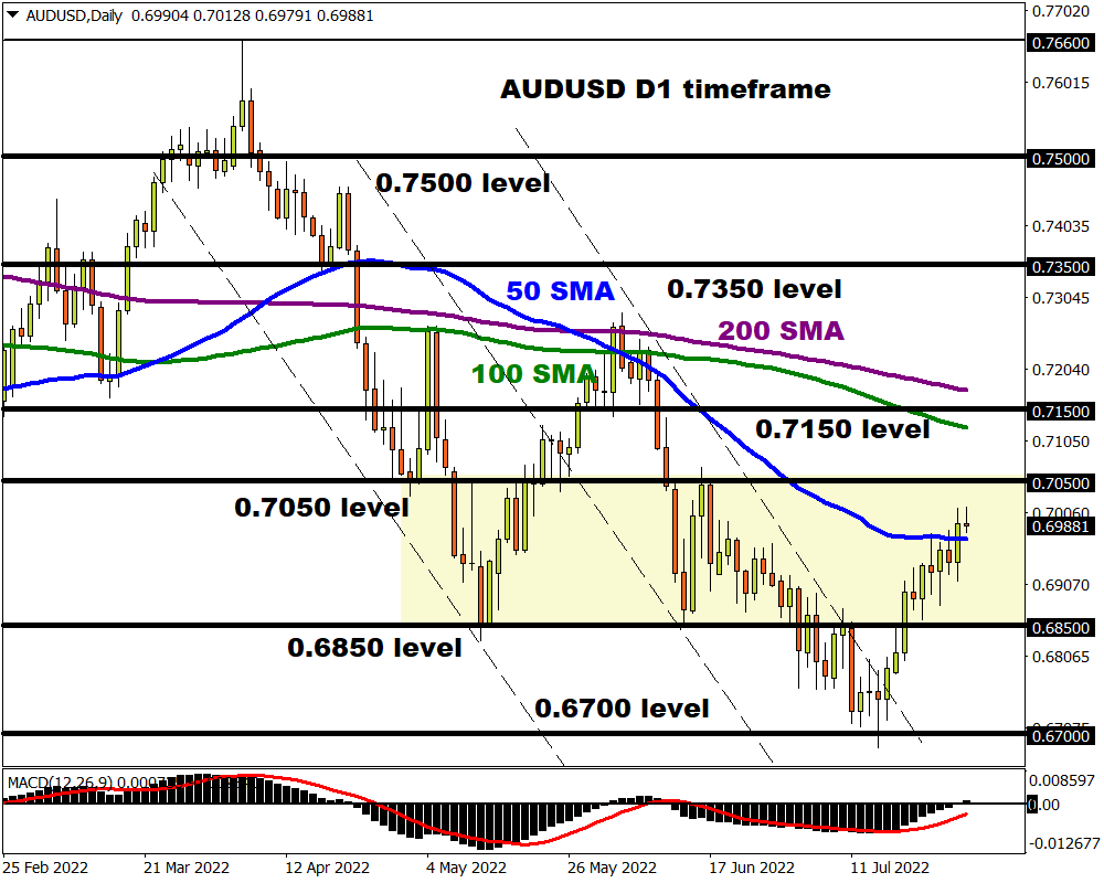 AUDUSD eyes 0.7050 resistance