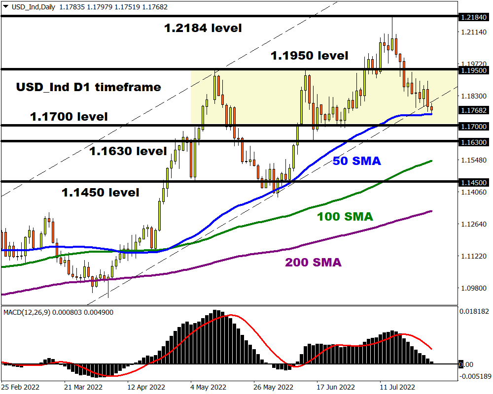 We can see a similar scene playing out on the equally-weighted USD index. A breakdown below the 50-day Simple Moving Average may open the doors towards 1.1700. Below this level, bears are likely to target 1.1630 and 1.1450.