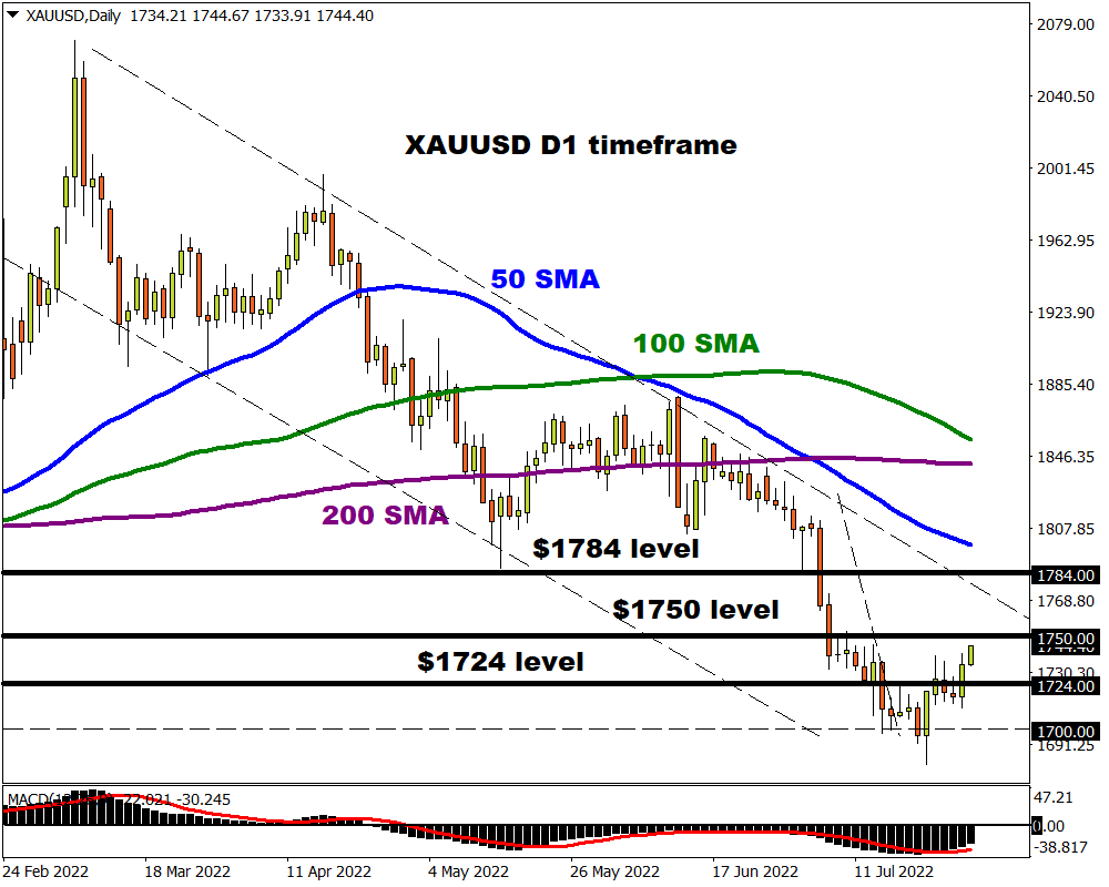 Reduced expectations over the Federal Reserve maintaining an aggressive approach on rates could provide zero-yielding gold some breathing room. A weaker dollar is likely to complement upside gains, pushing prices further away from $1700. Talking technicals, a breakout above $1750 could signal a move towards $1784.