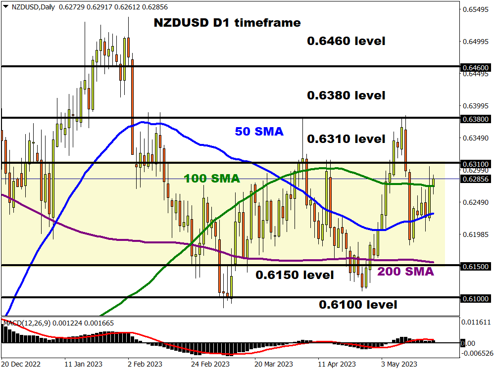 Although inflationary pressures slightly cooled in the first quarter of 2023, policymakers still see more upside risks due to severe weather events. Investors will also keep a close on the bank’s new projections for growth and inflation which could offer fresh insight into the RBNZ's next move. Any hawkish bias has the potential to strengthen NZD bulls.