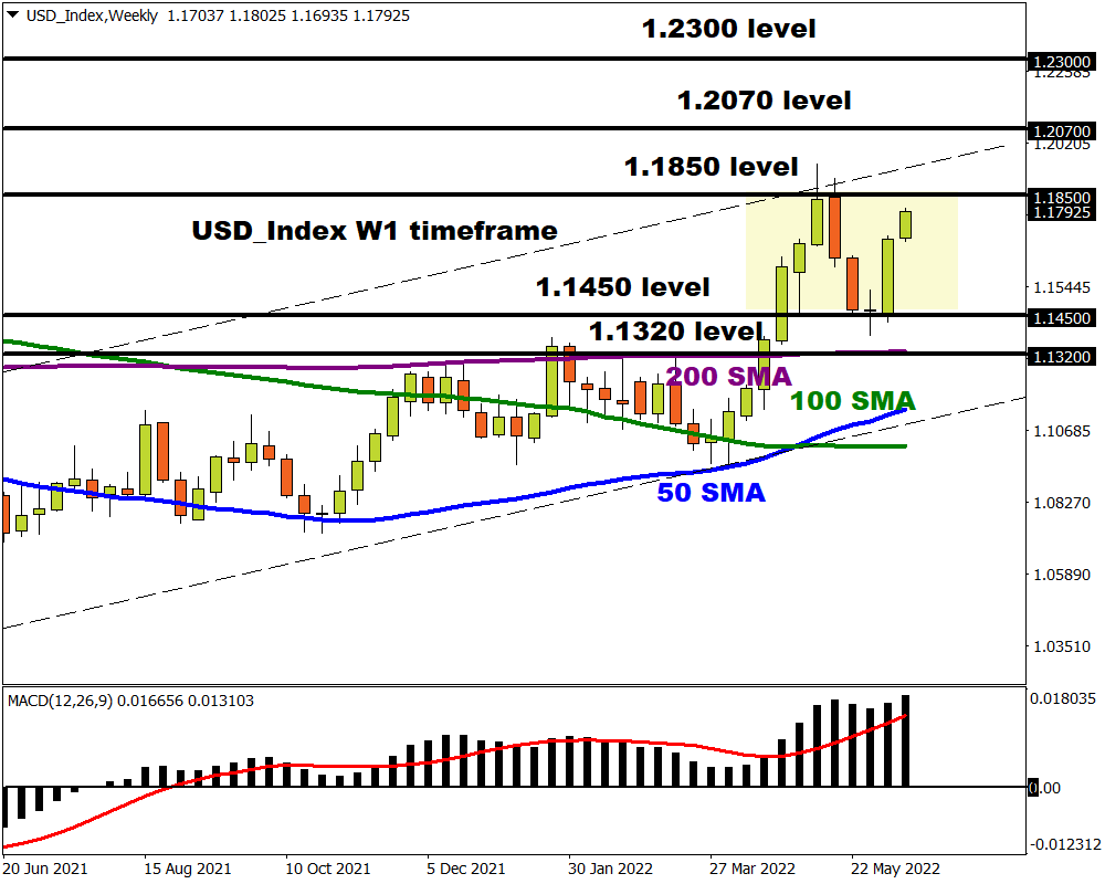 It looks like the equally-weighted USD Index could be gearing to push higher with 1.1850 acting as a key level of interest.